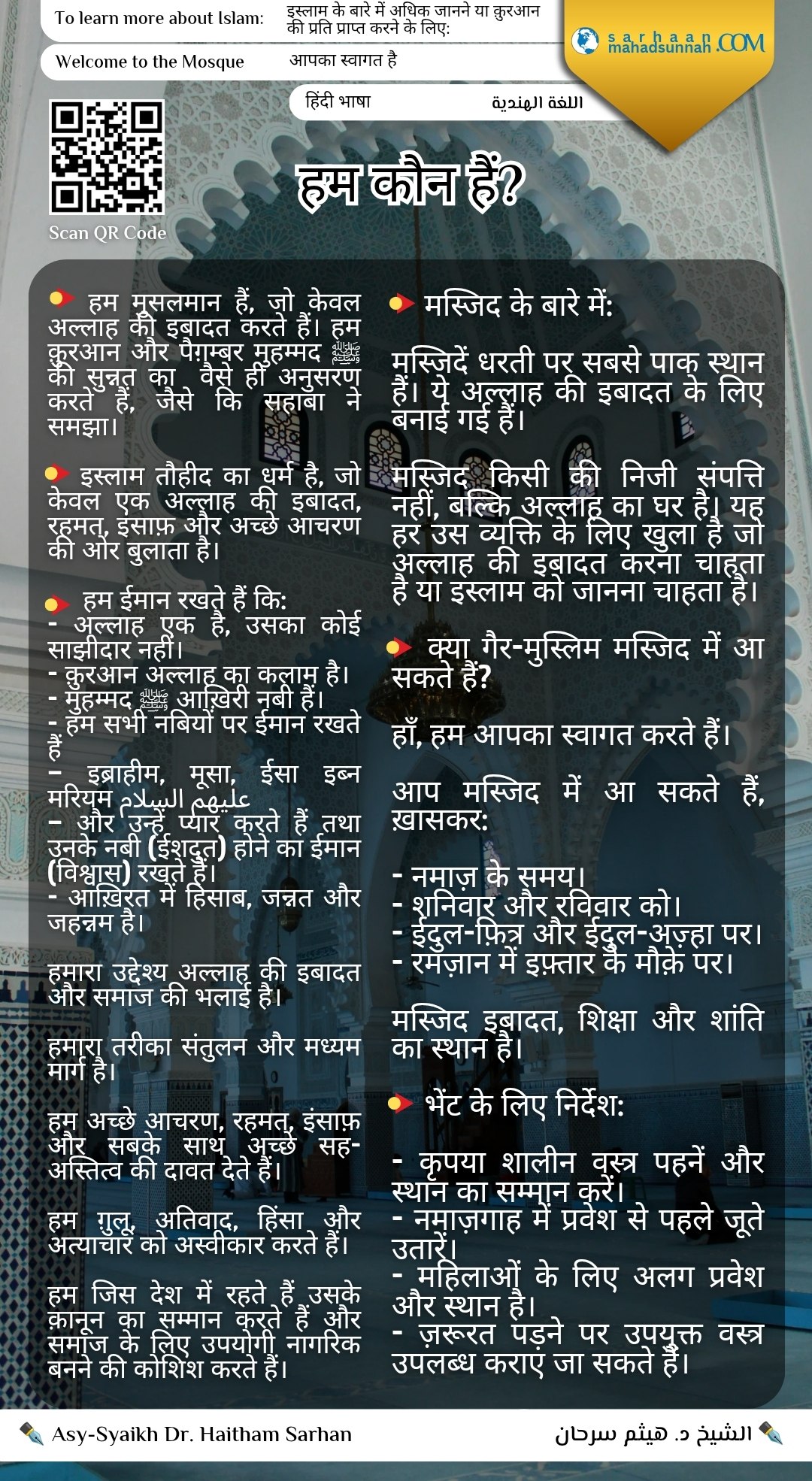 من نحن؟ اللغة الهندية हिन्दी 📌 “हम कौन हैं?” शीर्षक वाला एक सुंदर दावत परिचयात्मक बोर्ड, जिसे आगंतुकों को इस्लाम की वास्तविक सच्चाई, उसके विश्वास,