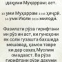 عاشوراء Ошуро Рӯзи сешанбе, Ошуро (даҳуми Муҳаррам) аст. 10-уми Муҳаррам 1446 ҳиҷрӣ. 16-уми Июли 2024 милодӣ. Фазилати рӯза гирифтани ин рӯз ин аст, ки гуноҳони як соли гузашта бахшида мешавад, ҳамон тавре ки дар саҳеҳ Муслим омадааст. Ва рӯза гирифтани рӯзи даҳуми моҳи Муҳаррам, ҳамроҳ...