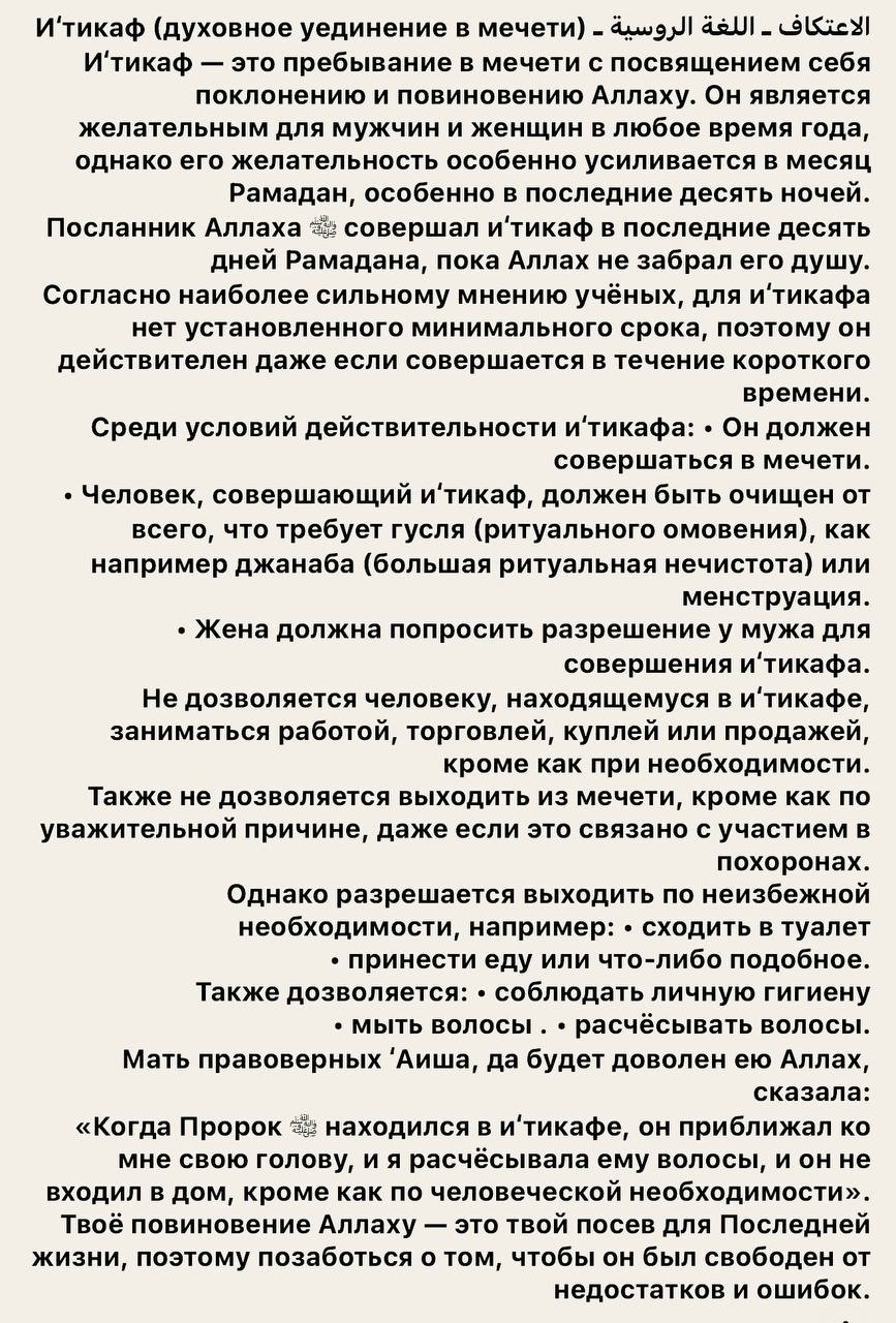 🕌 И‘тикаф является великим видом поклонения, в котором человек полностью посвящает себя поклонению, стремясь застать Ночь Предопределения (Лайлат аль-Кадр) и усердствуя в повиновении.