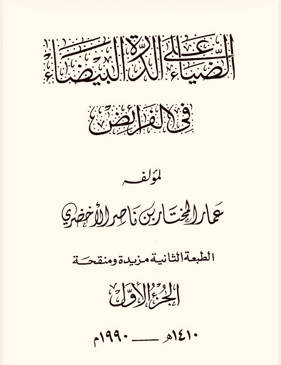 الضياء على الدرة البيضاء في الفرائض لشيخنا عمار المختار بن ناصر الأخضري