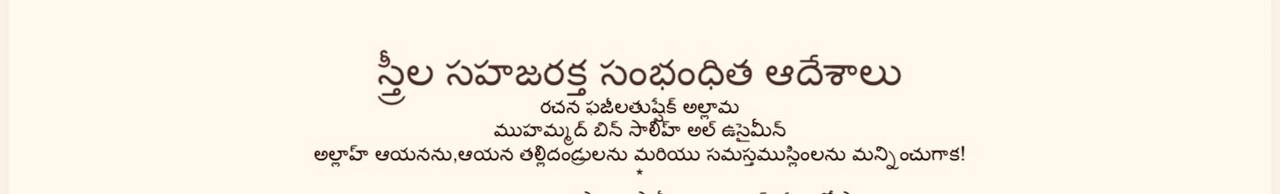 ✒️ స్త్రీల సహజరక్త సంభంధిత ఆదేశాలు - స్త్రీల సహజరక్త సంభంధిత ఆదేశాలు 👤 ముహమ్మద్ అస్సాలెహ్ అల్ ఉతైమీన్ ✒️ رسالة في الدماء الطبيعية للنساء - كتاب مترجم للغة التلقو عبارة عن رسالة مختصرة ونفيسة تتحدث عن الدماء الطبيعية للنساء كالحيض...