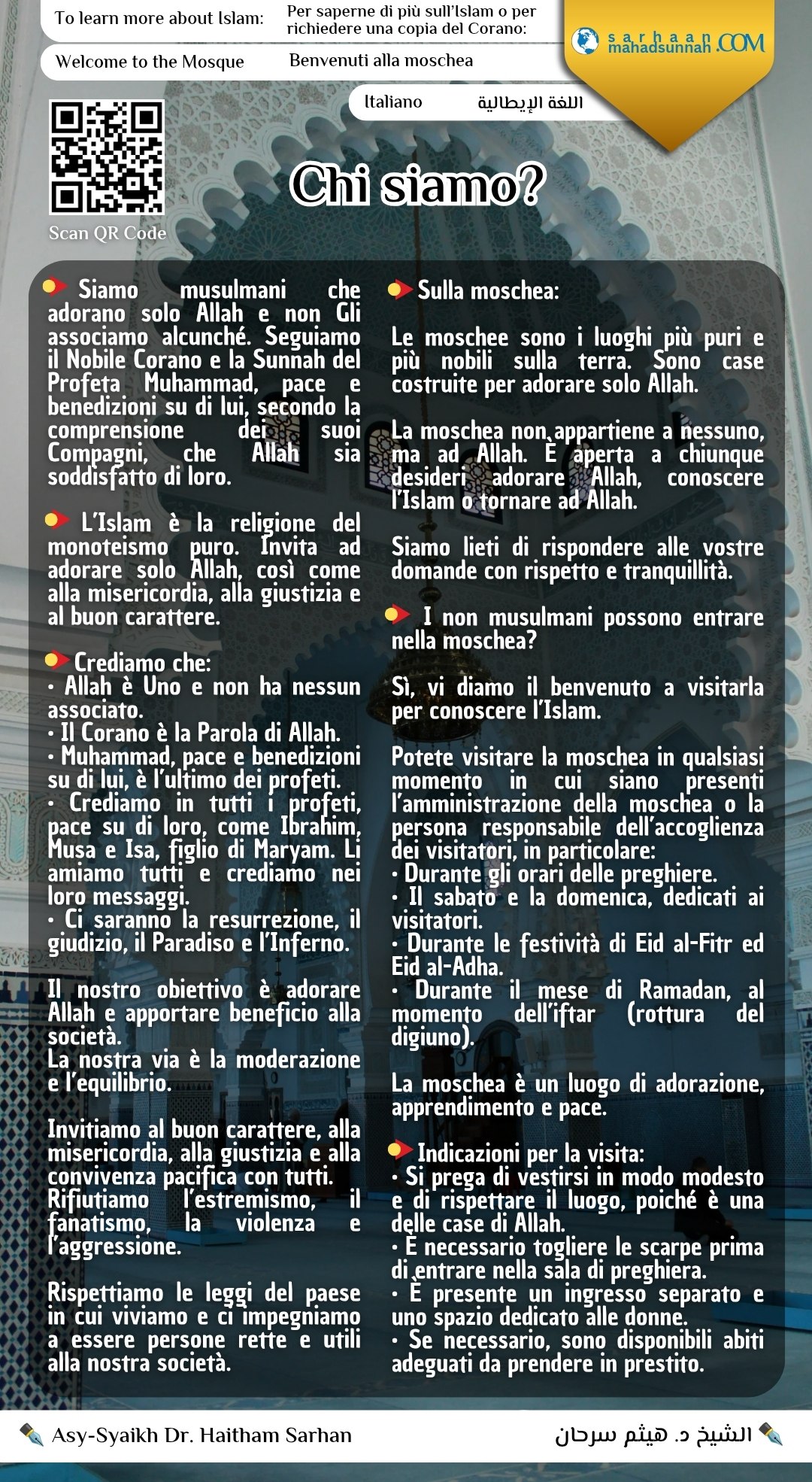 📖 Include risposte brevi e chiare sull’Islam, linee guida per i visitatori e un codice QR per un accesso rapido a fonti affidabili.