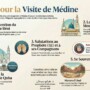 Guide bref pour les visiteurs de Médine présentant les étapes et les bonnes manières de la visite, en commençant par la sincérité de l’intention, la prière dans la Mosquée du Prophète pour son immense mérite, le salut respectueux au Prophète ﷺ et à ses compagnons, la visite de la mosquée de Quba pour obtenir la récompense d’une ʿUmra, puis la visite des martyrs de Uhud et du cimetière d’Al-Baqiʿ afin de se rappeler l’au-delà et invoquer pour les défunts.