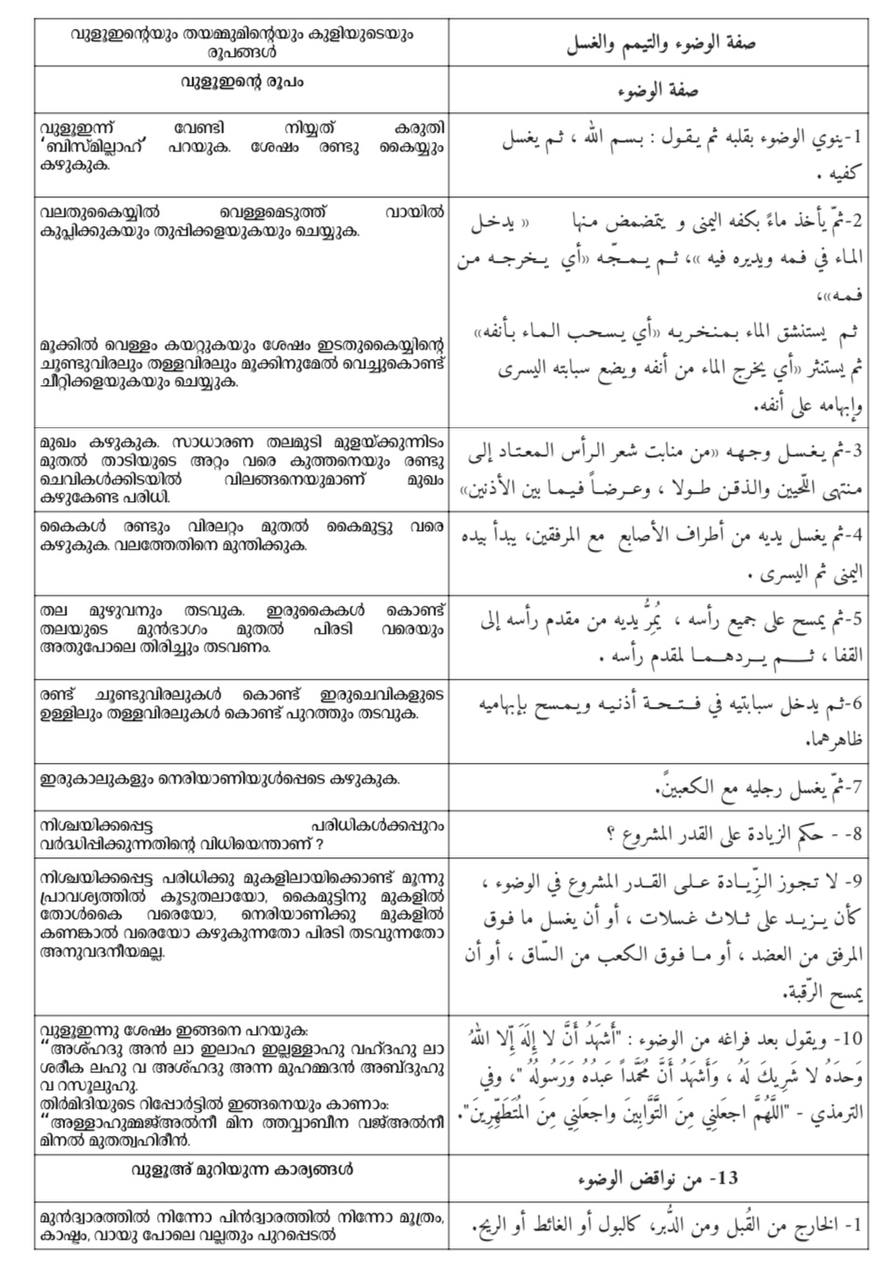വുദൂഇന്റെയും , തയമ്മുമിന്റെയും, കുളിയുടെയും രൂപം. മലയാളത്തിലുള്ള സചിത്ര പോസ്റ്റർ. തയ്യാറാക്കിയത് ഡോ. ഹൈസം സർഹാൻ. നബി (സ) യുടെ വുദൂഇന്റെയും തയമ്മുമിന്റെയും കുളിയുടെയും ചുരുക്ക രൂപം ചിത്രസഹിതം ഇതിൽ ഉൾപെടുത്തിയിട്ടുണ്ട്.